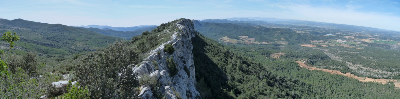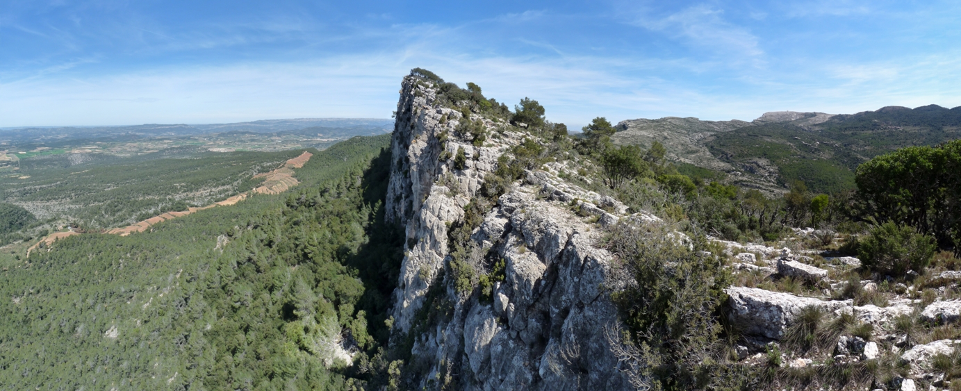 Cim poc marcat però aeri, des d’on albirem unes vastes panoràmiques que arriben a la Serra de Llaberia, el Montsant, Cardó i els Ports. Sota els peus podem veure el poble de Capçanes, final del nostre itinerari, a tocar del pantà de Guiamets i del viaducte ferroviari amb diverses arcades.