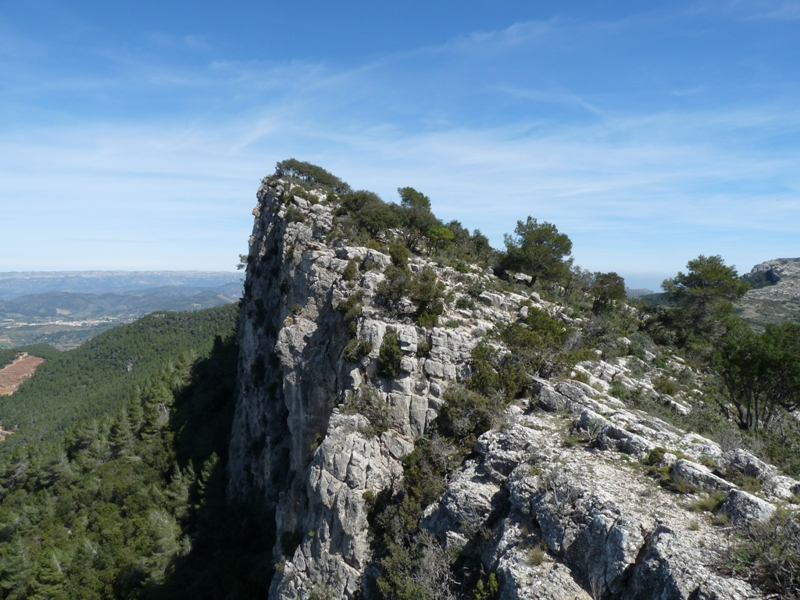 - Interès: L’aresta de la Desenrocada, amb impressionants vistes des de dalt del cingle i les barraques de pedra seca del Camí de les Taules