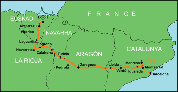 Camí de romiatge que segueix les passes que Sant Ignasi de Loiola va realitzar el 1522 des de la seva casa natal a Loiola fins a Manresa. En el seva part de recorregut per Catalunya, sovint coincideix amb Camí del Camí de Sant Jaume. Són moltes les opcions de trams a fer entre estacions de tren, atès que des de Lleida fins a Montserrat segueix la línia ferroviària que travessa l’Urgell i la Segarra.