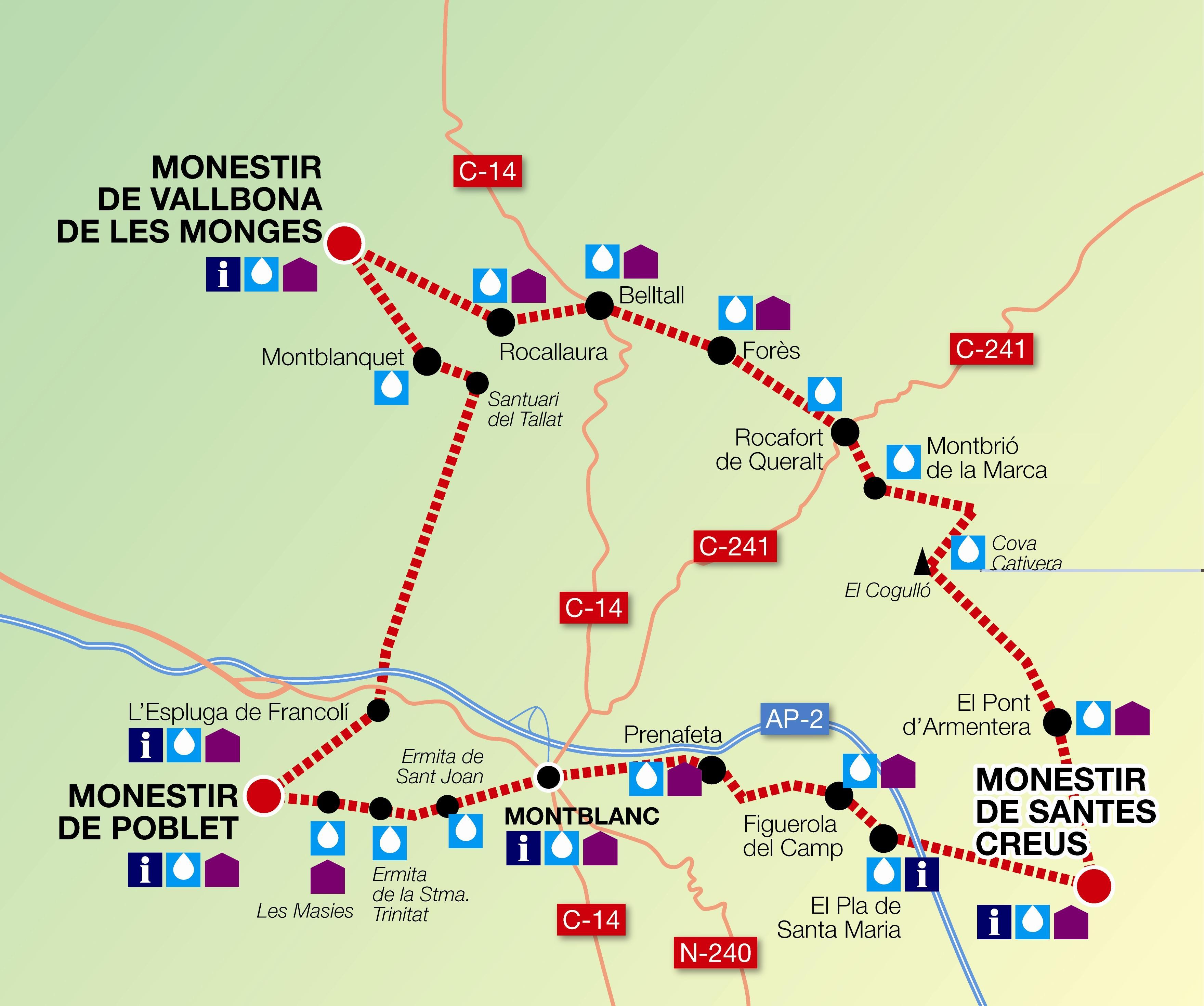 - Estacions de sortida/arribada: Montblanc i L’Espluga de Francolí (R13, R14)