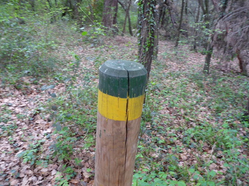 Deixem Sta. Maria de Gallecs seguint les marques del GR que ens porten a creuar la carretera per un estret pas inferior. Seguim a la dreta del torrent de Caganell 5 minuts fins a trobar una cruïlla.