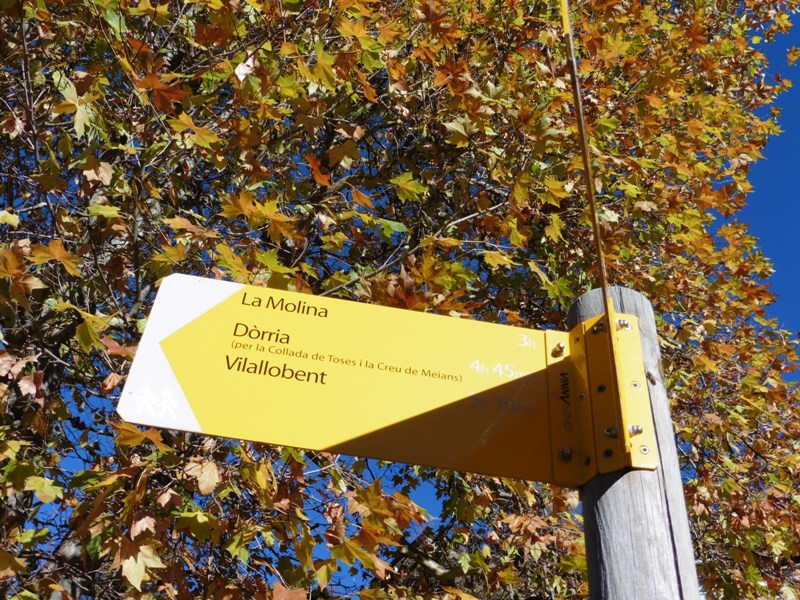 Durant la travessa trobarem només el sender abalisat de pujada a la Collada, un camí amb pintura groga i indicadors d’Itinerànnia.