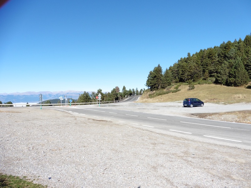Si no veiem clar el camí de baixada des de la carretera, podem anar a buscar l’inici d’aquesta pista caminant 450m per la carretera en direcció nord vers Les Colladetes. Trobarem l’inici en una esplanada a l’esquerra de la carretera just per on creua una línia elèctrica.