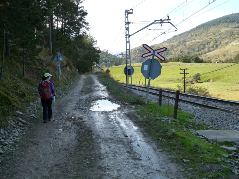 Sortim de l’estació cap a llevant (esquerra). Deixem enrere un altre bar-restaurant i prenem el Camí de Toses, indicat amb un pal indicador d’Itinerànnia amb mapa. Els indicadors ens portem per un corriol que passa a tocar de la boca d’entrada sud del túnel de Toses, mig amagada per la vegetació.
