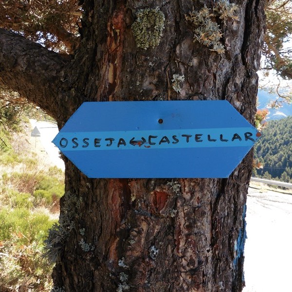 Durant la travessa trobarem només el sender abalisat de pujada a la Collada, un camí amb pintura groga i indicadors d’Itinerànnia.