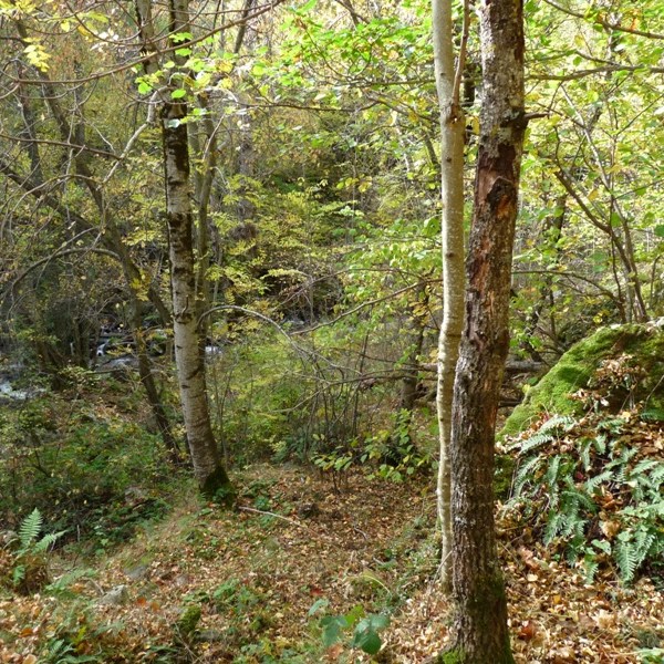 Som al punt més baix de la caminada. A tocar del riu, els bedolls, erabres, saücs i roures ens envolten en un entorn humit i gairebé màgic.