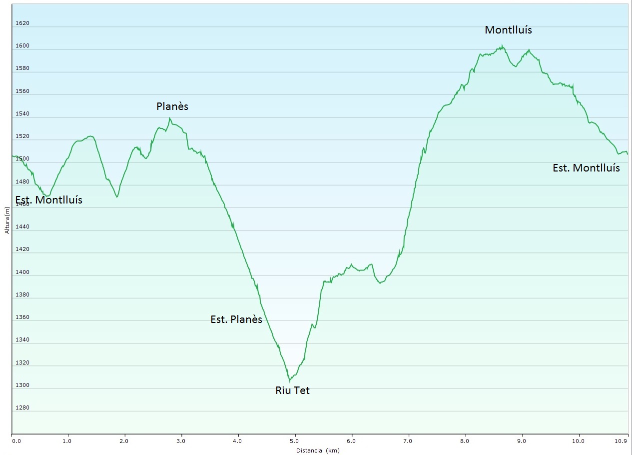 - Ruta: Estació de Montlluís – La Cabanassa – Planès – Planès de Dalt – Estació de Planès – Riu Tet – La Cassanya – La Castellassa – Montlluís – Tour de la Ciudadella – Estació de Montlluís