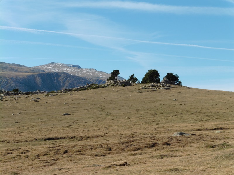 Assolim una àmplia esplanada amb el Puigpedrós com a teló de fons i on hi solen pasturar bestiar i cavalls. En aquest pla és on es troba (dreta) l’Orri d’en Corbill, la construcció en pedra seca més important del conjunt de barraques de la zona. Té un diàmetre de 3,6m i ha estat reformada amb ciment i té una porta metàl·lica.