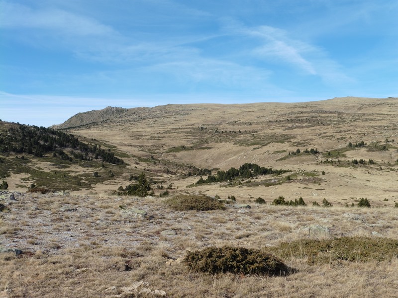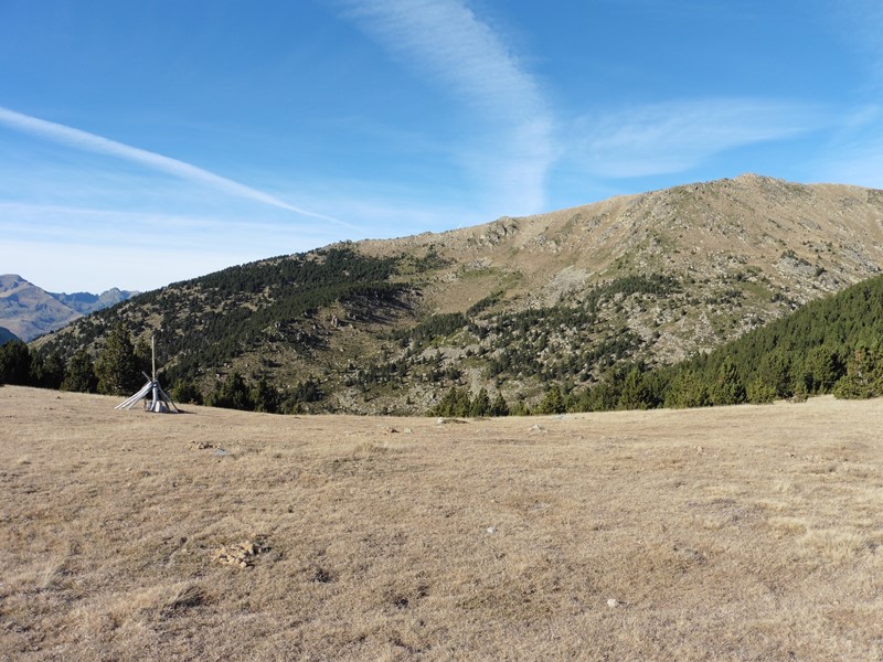 En aquest petit coll trobem una petita pleta a la part més alta, d’on reprenem la rocosa i malmesa pista tombant a la dreta per pujar durant 20 min més fins al Pla de l’Orri.