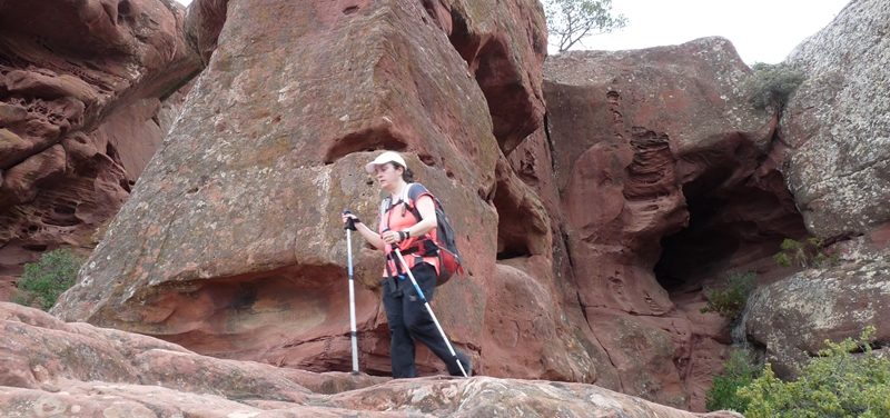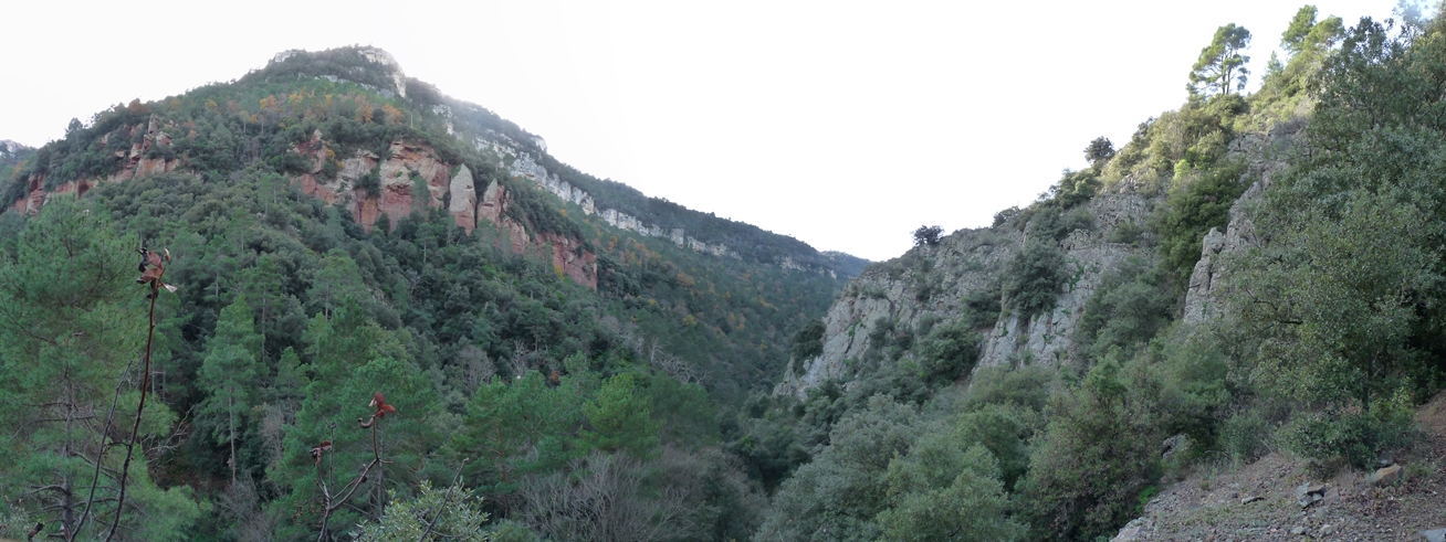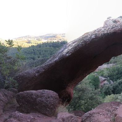 La ruta és espectacular. Travessa íntegrament la cresta de roques de gres vermell de la serra. Així mateix, veurem les curioses formacions rocoses (fins i tot es passa pel mig d’un forat) que la meteorització ha creat sobre el gres. Els agents atmosfèrics han modelat formes capricioses com els ‘àlveols‘, petites cavitats semiesfèriques que reben el nom de ‘tafoni‘ o ‘talfoni’ si són grosses. També podrem observar ‘cadolles‘ (panholes), petites cavitats circulars que es formen sobre la roca. Són les típiques banyeres amb aigua que trobem a les roques després de ploure.