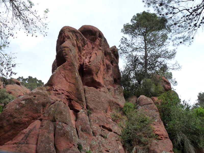 Durant la caminada passarem a tocar d’aflorament rocallosos formats per roques vermelles. Molt a prop tenim el municipi de Castellví de Rosanes i el mateix castell de Rosanes, ambdós indrets que fan referència clara al color de les roques. D’especial interés són les Roques del Mateuet. Si tenim temps i ganes de ficar-nos entre vegetació densa ens hi podem acostar per gaudir dels taffoni, formacions curioses que el vent i l’aigua han format sobre els penyals.