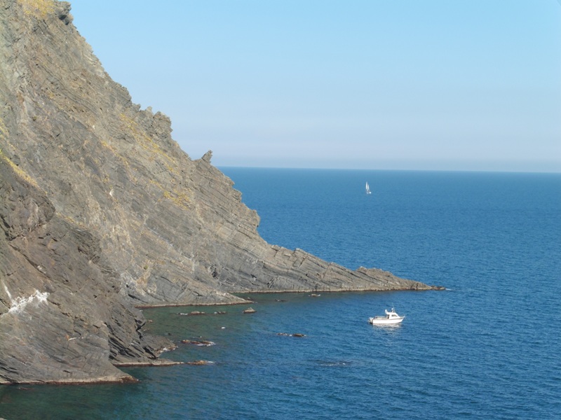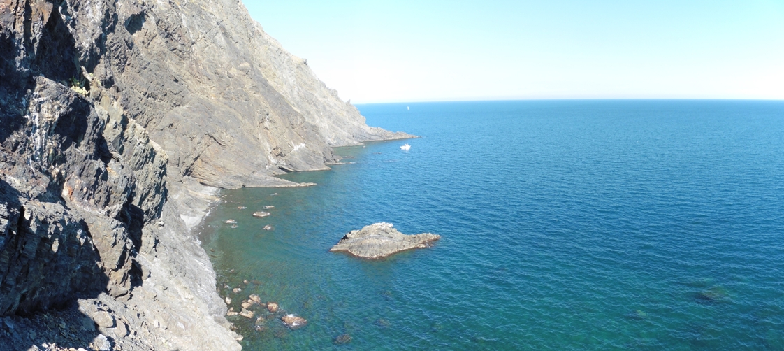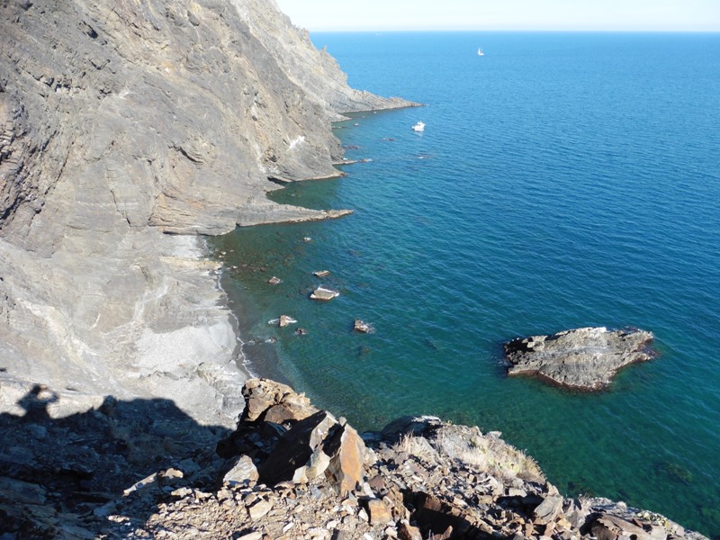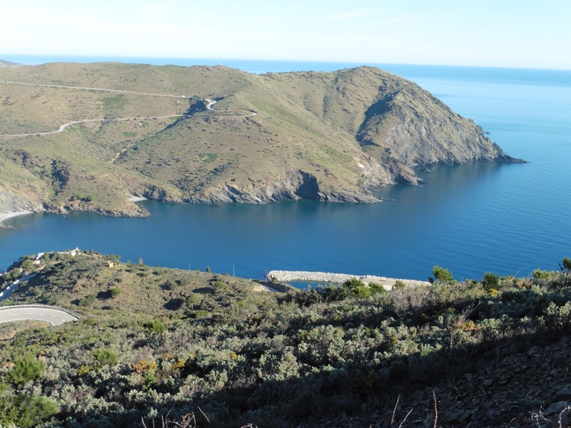 Des del Coll de Belitres podem baixar directament a Portbou (30min) seguint els senyals grocs d’Itinerànnia (pal indicador). Però deixaríem de gaudir de l’espectacular Camí de Ronda entre el Puig Cervera i Portbou, abalisat però aeri en algun tram, i des d’on obtindrem enormes vistes dels penya-segats que hi ha sobre la platja de les Presses i l’Illa del Corb Marí.