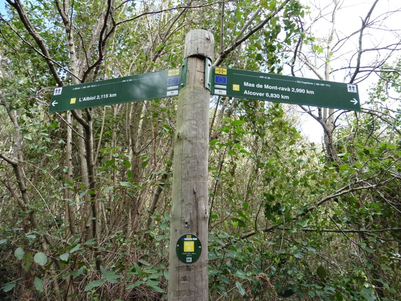 Cruïlla on abandonem el PR C-20, sender que ressegueix la vall del riu Glorieta amunt fins a Mont-ral. Nosaltres prenem la variant PR C-20.1 d’aquest sender que connecta Alcover amb aquest sender.