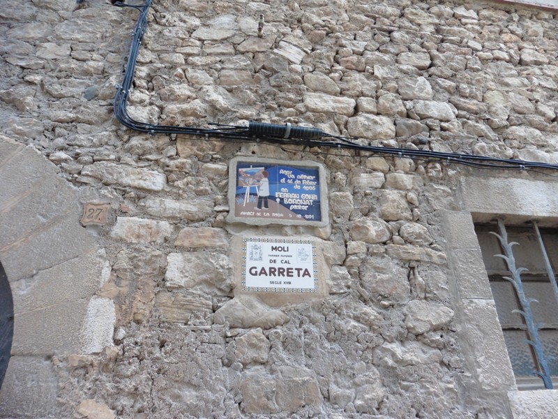 Les marques blanques i vermelles del GR-7 ens porten pel centre de la vila, passant davant les façanes de molins històrics de La Riba. Tots els antics molins estan indicats amb rajoles de ceràmica al seu exterior. El primer que trobem és el Molí paperer de Més Amunt, datat de 1791 segons llegim en una dovella a la portalada.
