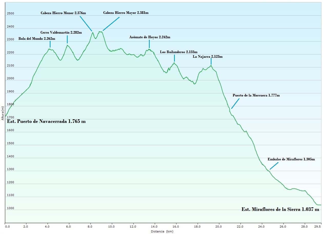 El que és segur és que som al punt més elevat de la Cuerda Larga i dalt d’un dels principals cims de tot Guadarrama juntament amb el Peñalara. D’aquest cim podem observar el camí fet fins ara, amb la Bola del Mundo a ponent, així com el tram de carena que ens resta per fer, amb el cim de la Najarra, últim cim de la Cuerda Larga, sobresortint de l’esplanada cimera.