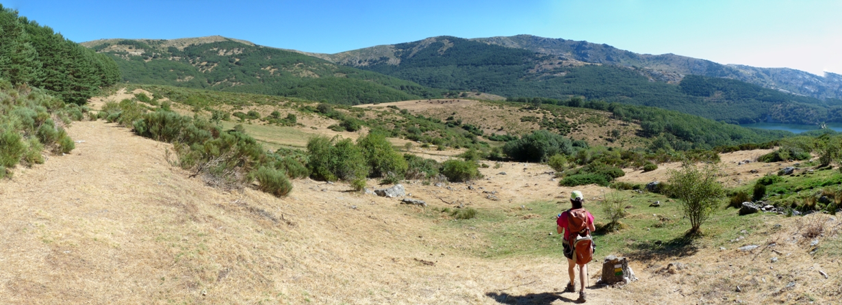 El camí fins a l’embassament és força agradable. L’hem d’anar a buscar a l’extrem sud del mirador (hem de deixar el pàrquing a l’esquerra) d’on baixa un corriol que va pel vessant nord de La Najarra i que s’endinsa ràpidament en una interessant pineda de pi roig. Cap als 1.450 m d’alçada el camí creua els ‘Llanos de la Matanza’, uns prats enmig del bosc on quan hi vam passar nosaltres hi havia braus pasturant. El camí ens portarà entre una magnífica roureda ràpidament fins a l’embassament.