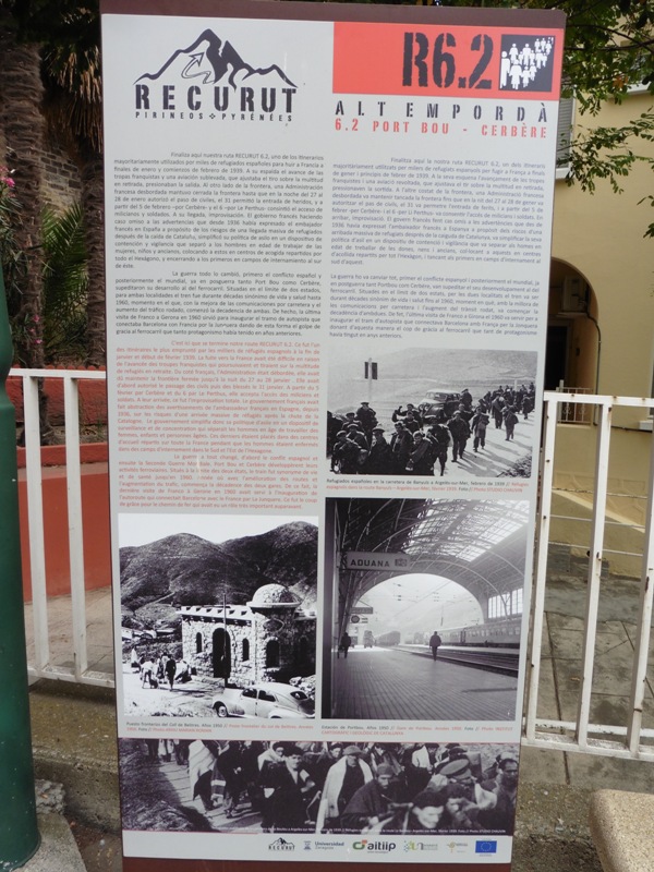 Del 20 de gener al 10 de febrer de 1939, més de 100.000 espanyols, homes, dones i nens van passar per aquest túnel i aquesta estació de Cerbère, empesos cap a l’exili després de 3 anys de lluita contra el franquisme. Van ser les primeres víctimes de la 2a. Guerra Mundial.
