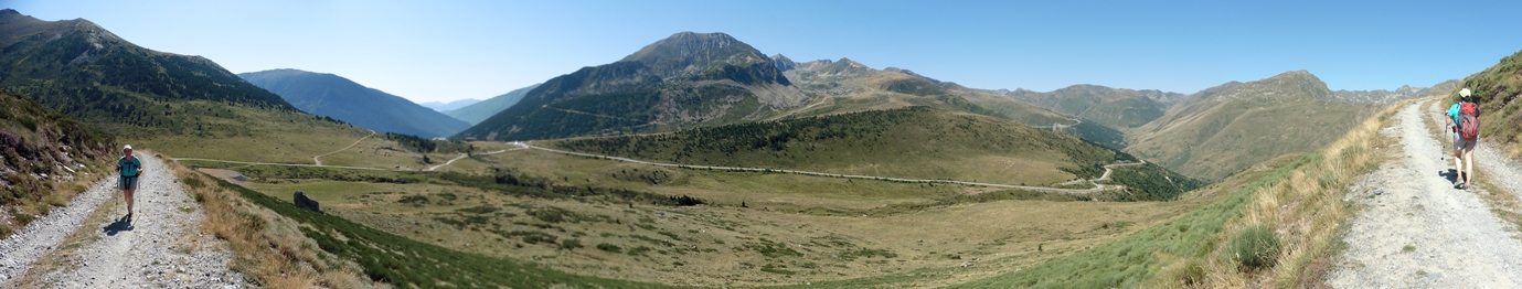 Assolim el punt més alt de la travessa a la cota 2.042 m en una petita esplanada on abandonarem la pista que seguíem. La cruïlla està senyalitzada amb un pal indicador de fusta. L’indret esdevé un mirador fantàstic dels Pirineus, des d’on podem observar de sud a nord, el coll de Pimorent, el pic de l’Estanyol, el pic de la Mina, el pic de les Valletes, el coll d’Envalira, i els pics de Roc Malé i Alba entre molts d’altres.