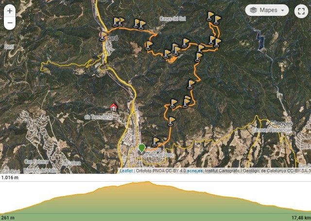 16,9 km 4h52min Font de la Noguera Punxaguda (339 m) (gps 31T 439885 4619691)