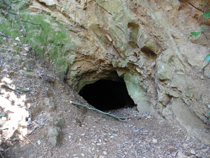 Una reixa de ferro tanca una petita cavitat molt abandonada en el moment que vam visitar l’indret. Sembla que l’origen de la petita cavitat van ser unes cates de baritina que no es van explotar. Encara es pot observar el mineral blanc a les parets de l’interior de la cova.