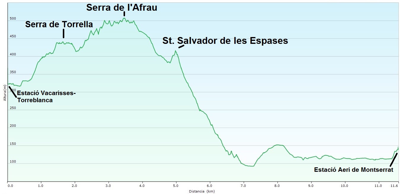 11,6 km 3h05min Estació Aeri-Montserrat (143 m) (gps 31T 404441 4605012)