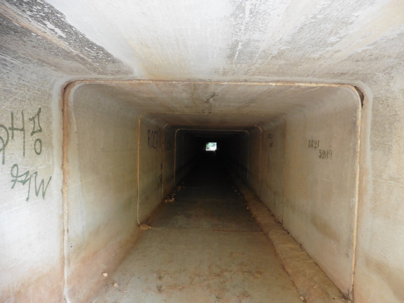 Un cop sortim del túnel, continuem per la pista que ens porta a passar per la dreta d’un dipòsit fins a un camí asfaltat.