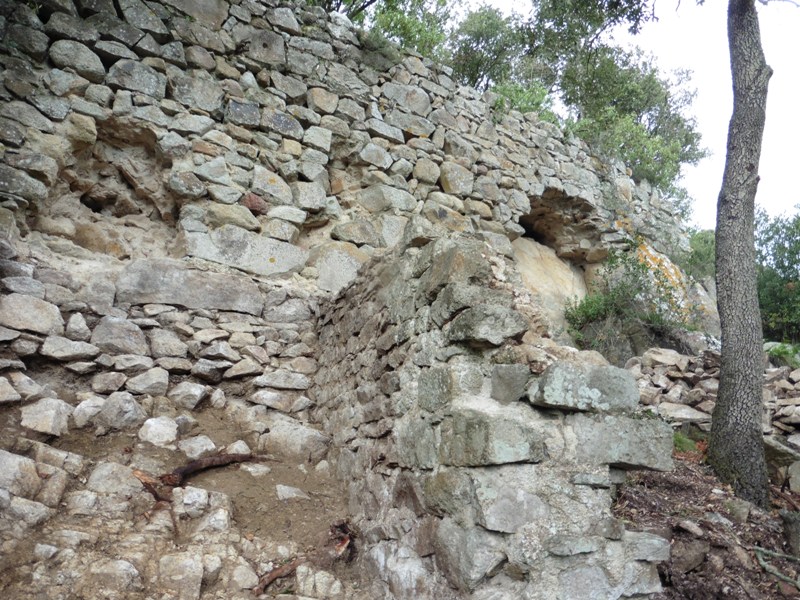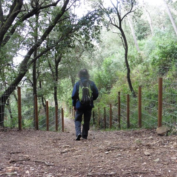 De nou al repetidor, prenem un corriol que baixa pel vessant nord del turó del castell, força ombrívol i humit. Més avall el camí baixa entre grans tanques que delimiten diferents terrenys i que donen l’aspecte de posar portes al camp.