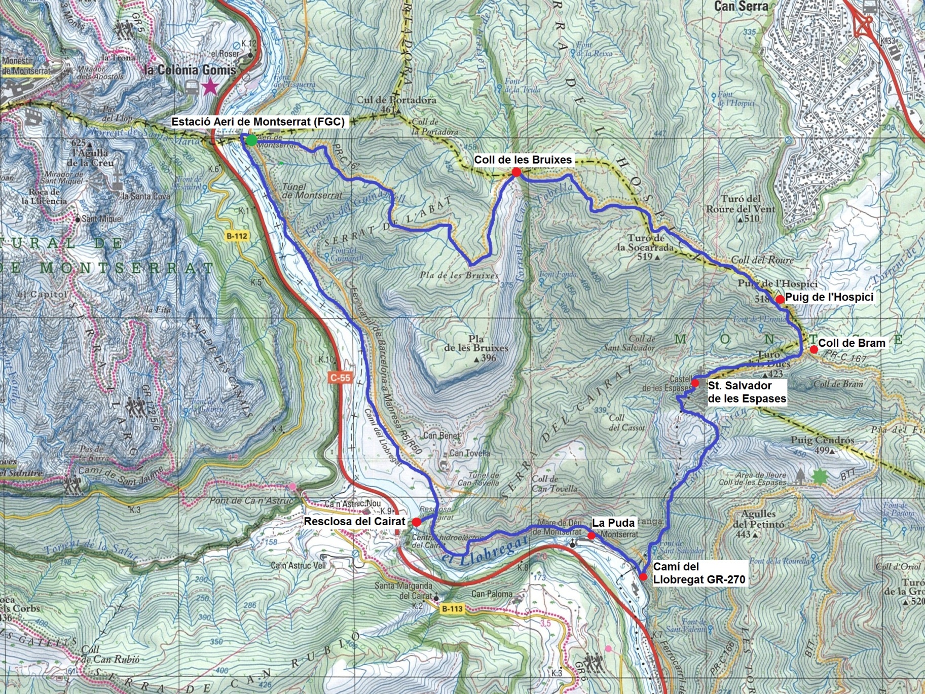 - Estació de sortida/arribada: Aeri de Montserrat (FGC)