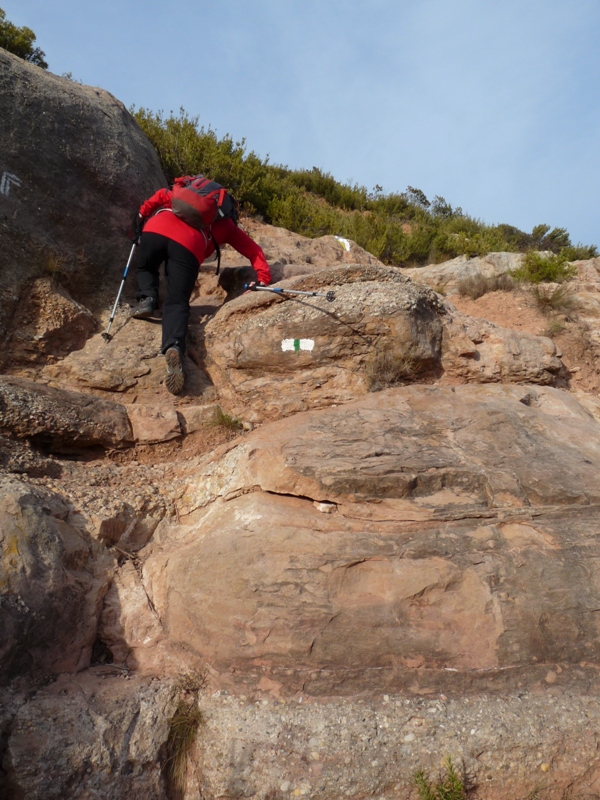 Baixant del cim del Puig de l’Hospici hi ha un petit grau que pot fer que utilitzem les mans, curt i sense complicacions.