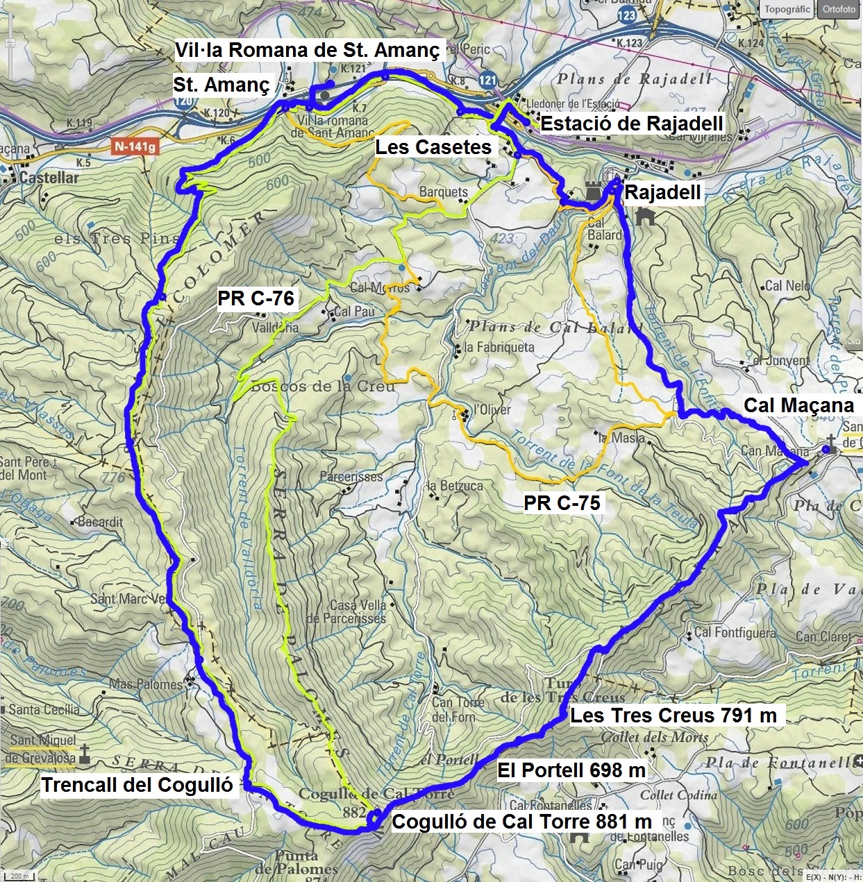 - PR-C 76 des de Rajadell el seguirem fins al Cogulló, cim inclòs a la llista dels 100 Cims de la FEEC i situat gairebé a meitat de l’itinerari.