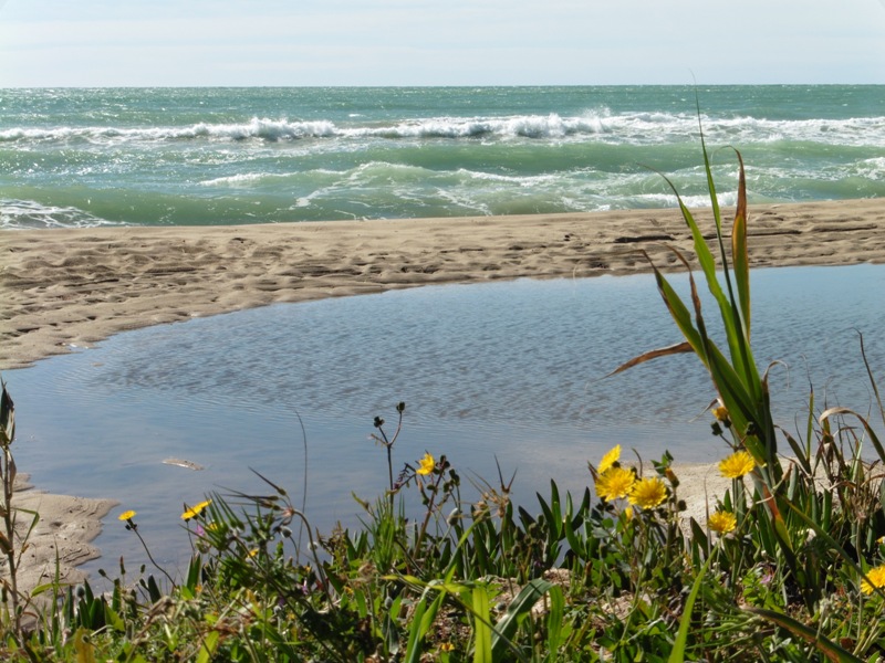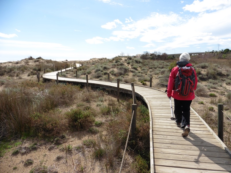 Situats de nou al trencall que donava accés a l’Arc de Berà des de la platja Llarga, caminem per la platja semi-urbana amb passeig marítim amb les vies del ferrocarril a tocar. El final del passeig marítim marca el límit municipal entre Roda de Berà i el Creixell, punt on creuarem un petit torrent per un pont de fusta.