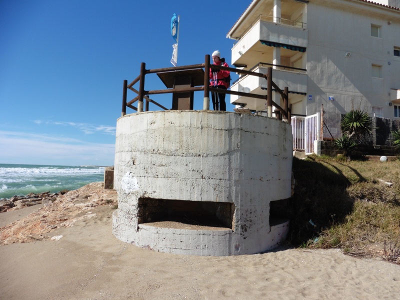 Casamata situada uns metres sobre el mar. Al seu sostre, excel·lent mirador de la platja, trobem un plafó informatiu on podem llegir: