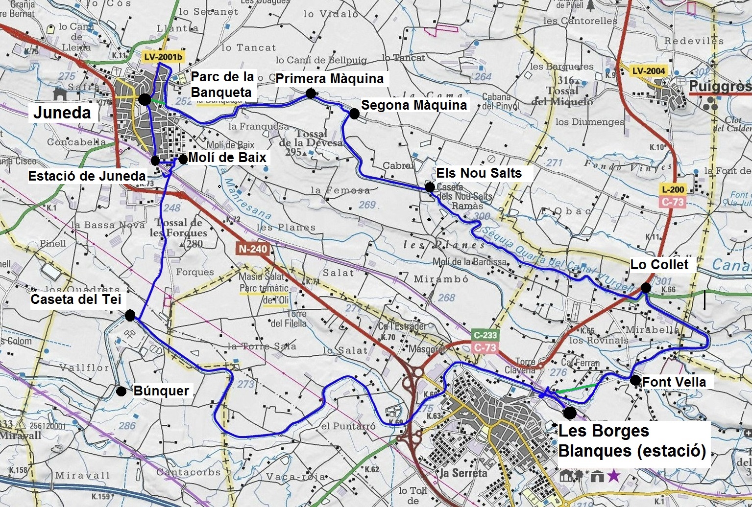 8,7 km 2h08min Estació de Juneda (gps 31T 318684 4601400)