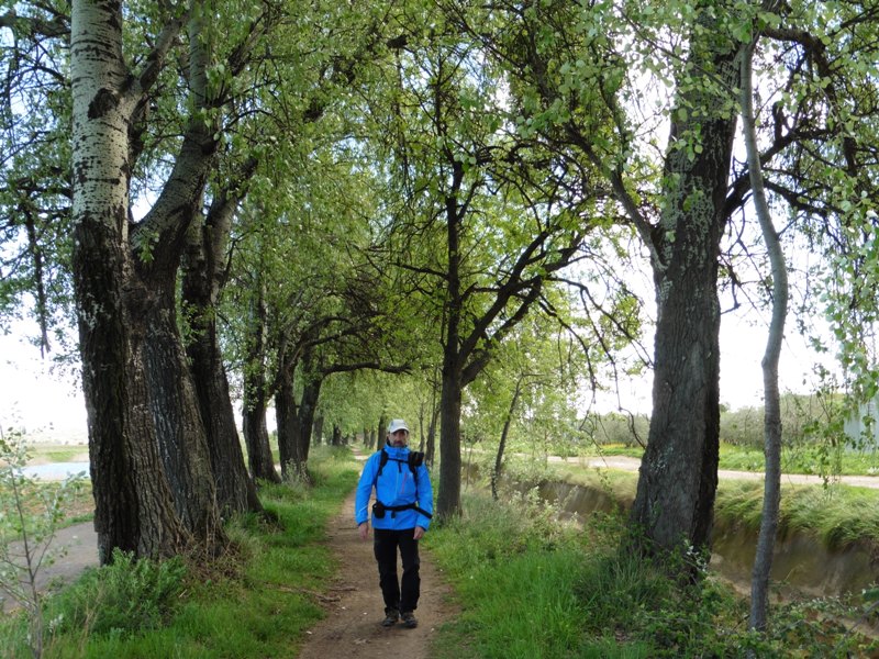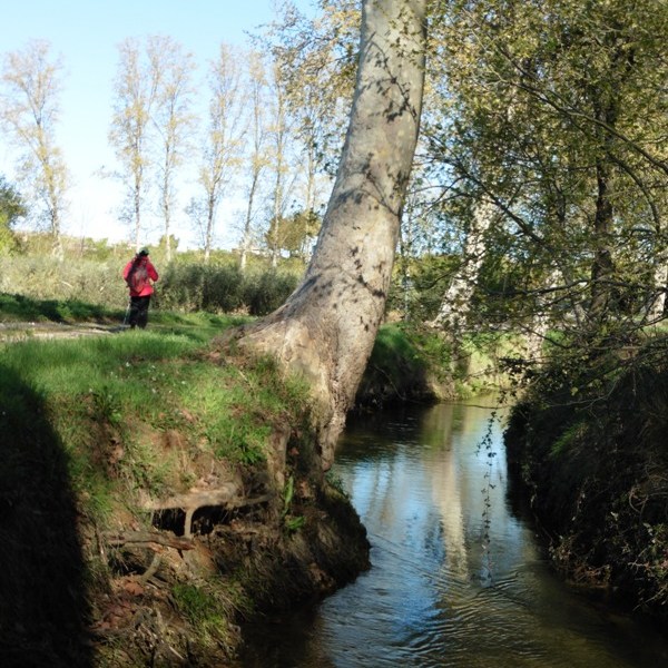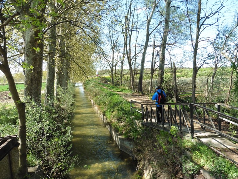 Deixem enrere Los Nou Salts per continuar remuntant la Quarta Sèquia aigües amunt tot passat pel Meandre de les Planes, on el canal fa un bonic revolt envoltat de plataners i esplendorosos àlbers.