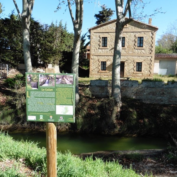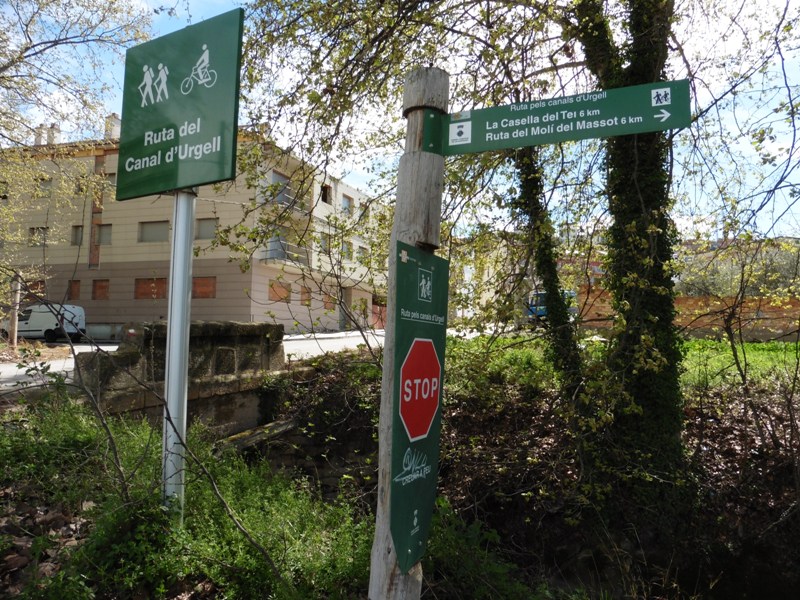 Atenció a la cruïlla amb un pal indicador que ens pot fer agafar el camí equivocat. Bona part de la ruta que hem fet ha seguit la Ruta pels canals d’Urgell creada pel Consell Comarcal de les Garrigues. En aquest punt l’abandonem per continuar recte per l’esquerra del canal sense fer cas al pal indicador que ens marca el camí a Lo Collet i la Font Vella per una opció més llarga.