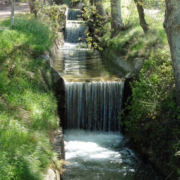 En alguns trams, però, el relleu natural tenia un fort pendent, cosa que obligà a construir salts amb carreus de pedra on l’aigua pogués dissipar la seva energia sense causar danys ni erosió.