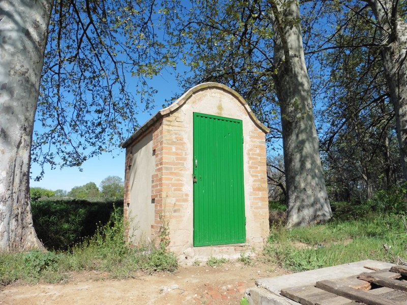 Al costat de la caseta hi ha un gran embassament, encerclat per una tanca, que controla les aigües durant el tram final del canal. En aquest punt deixem el Canal d’Urgell, que retrobarem més endavant a Lo Collet, per continuar al nord un camí asfaltat que ens portarà entre camps de conreu i solars fins a l’entrada de Juneda.