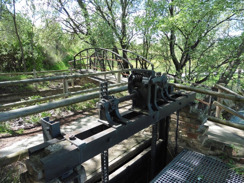 Al final del parc de la Banqueta, quan el canal torna a ser visible, arribem a la primera de les dues màquines que trobarem abans dels Nou Salts: