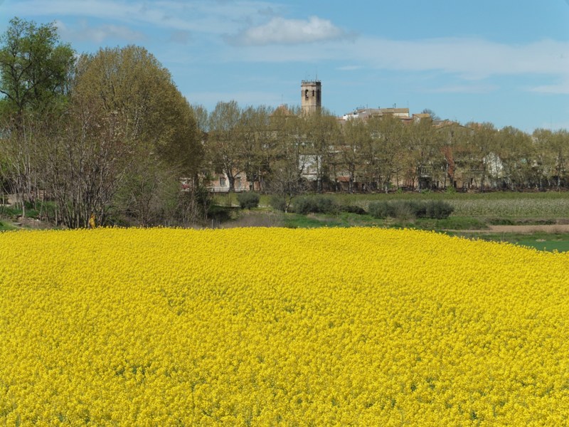 Des del parc durant la primavera tindrem unes interessants vistes del poble sorgint darrere els camps de colza pintats de groc intens.