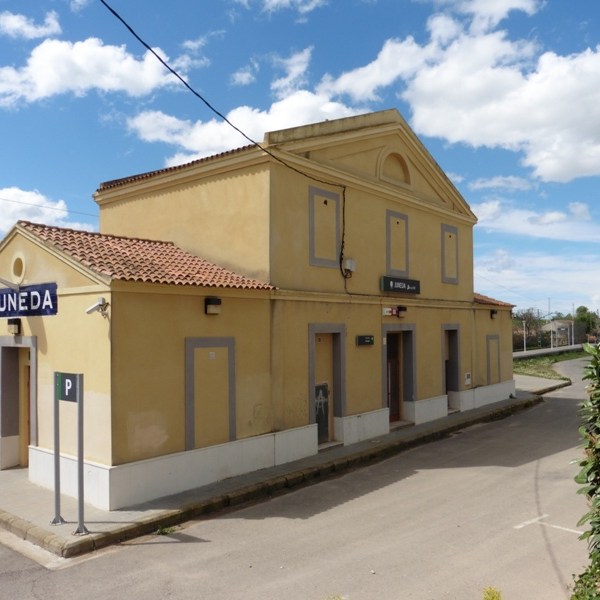 Tot i que l’estació va entrar en servei al segle XIX l’edifici actual data de 1920, una obra austera de reminiscències neoclàssiques, que fou reformada el 1980 com a sala d’espera. Destaca també l’anomenada Casilleta, una petita estança que originàriament era de fusta i usada com a estació provisional, situada al creuament entre l’antic camí de les Borges Blanques i la via, i que tenia la funció d’alberg per al guardabarrera. Precisament arran de la Setmana Tràgica de 1909, durant la qual es calà foc al tren correu de Tarragona a Lleida a l’altura de la Floresta, un grup de junedencs incendià la Casilleta motiu pel qual fou substituïda per una de pedra. En total es comptaven fins a quatre caselles més: la del Salat o d’en Simó, la d’en Xammar, la Casilla de la Reina i la de l’estació, la majoria de les quals foren enderrocades. (Font: Ajuntament de Juneda)
