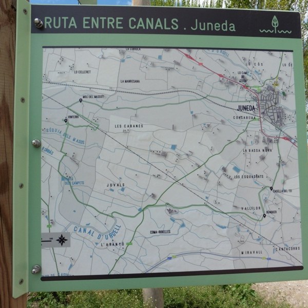 SORTIDA JUNEDA: si sortim de Juneda tindrem una experiència menys urbana. El Canal d’Urgell passa per l’extrem nord de Les Borges Blanques sense trepitjar pràcticament els seus carrers. Si iniciem la ruta en aquesta població cal tenir en compte que és millor fer-la en sentit anti-horari i deixar per al final el tram més interessant de la caminada, la part de les ‘màquines’, els Nou Salts i el Parc de la Banqueta.
