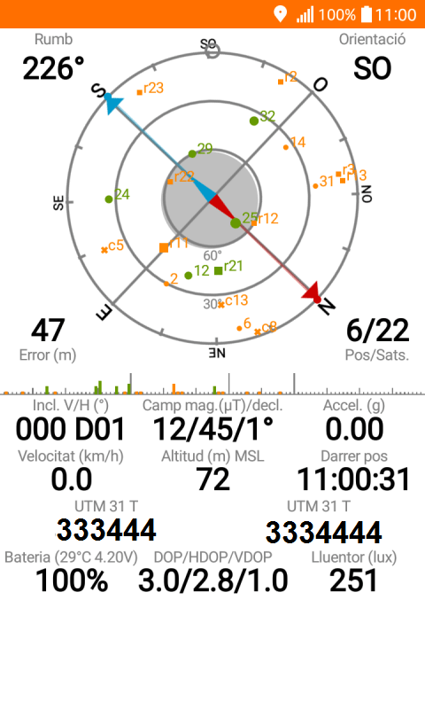 Una eina indispensable per a conèixer l’estat del nostre sensor gps. Alçades amb correcció, posicionaments dels satèl·lits, calibratges, compartiment del nostre posicionament…