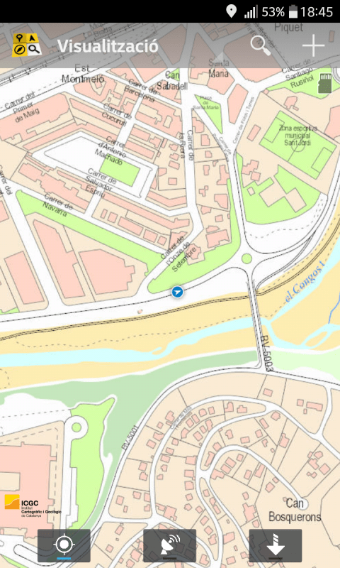 També de l’ICGC, l’aplicació permet la descàrrega offline dels mapes topogràfics i/o ortofotomapes de l’ICGC. Disposa de cursor de posicionament, però cap altra funció pròpia d’un gps. Es troba a faltar una escala més petita, però són força pràctics per a saber on som.