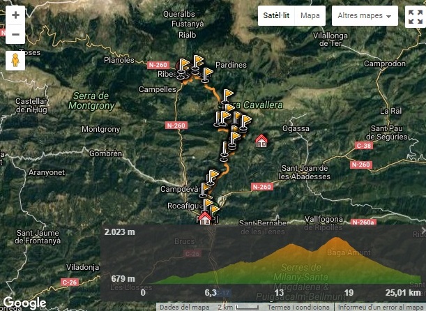- 1a etapa: Ripoll-Refugi Sant Jordi (coll de Jou): 15,2 km +1.400 m -520m