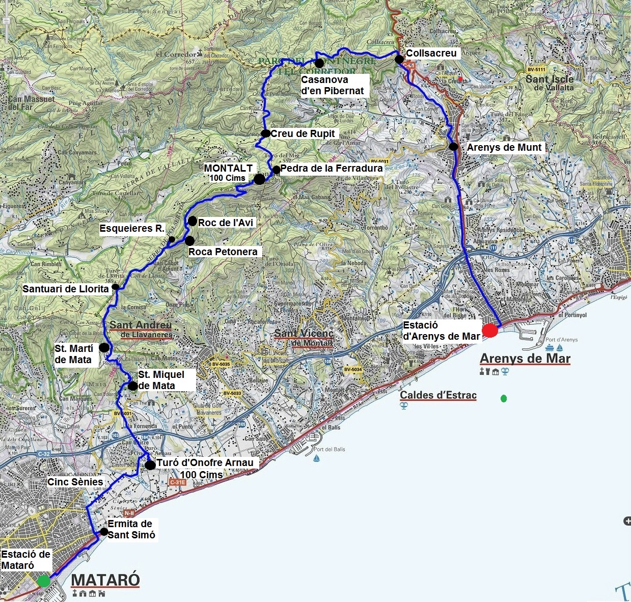 22,3 km 5h40min Arenys de Munt (130 m) (gps 31T 461578 4606813)