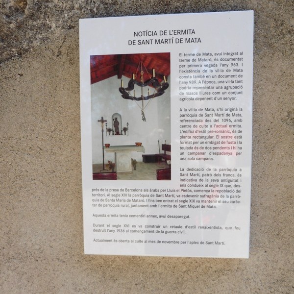 A la vil·la de Mata, s’hi originà la parròquia de Sant Martí de Mata, referenciada des del 1096, amb centre de culte a l’actual ermita. L’edifici d’estil pre-romànic, és de planta rectangular. El sostre està format per un embigat de fusta i la teulada és de dos pendents i hi ha un campanar d’espadanya per una sola campana.