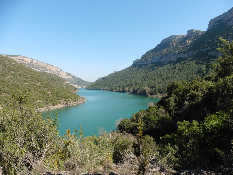 El camí comença zigzaguejant en ascens, que després del desnivell acumulat durant la resta de jornada ens farà la guitza. Anem per l’obaga de la Serra de Mont-roig formada per una ombrívola roureda que durant molta estona no ens permetrà observar les aigües del pantà de Camarasa que tenim a tocar mateix.
