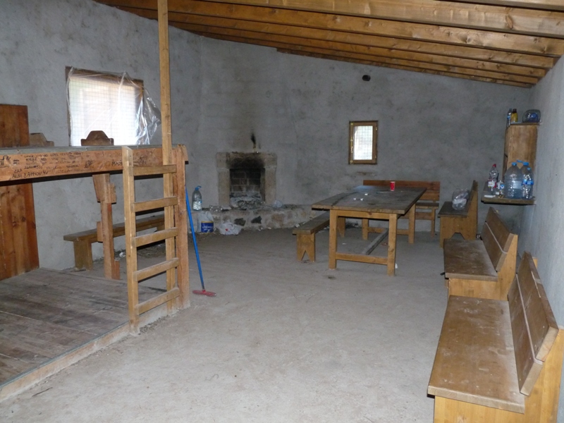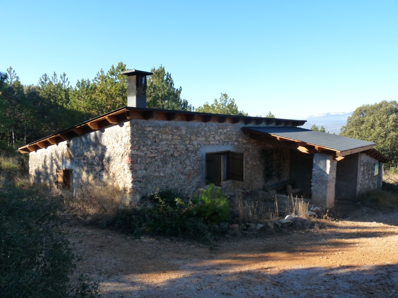 Cruïlla de camins. Cap al sud davalla fins al coll d’Orenga per un esplèndid sender que baixa sota les parets anomenades ‘Pilar sin Brillo’. També aquí finalitza el Camí de les Altures, la pista que puja des de Vilanova de la Sal i que hem creuat al coll de Porta. Nosaltres, però, anem uns metres al nord fins al refugi del Pletiu de l’Extrem o del Xut, una cabana forestal que es va adequar el 2009 com a refugi lliure. S’hi van fer obres per a crear una petita bassa d’aigua de pluja i es va fer una font però no confieu a trobar-hi aigua. Pot ser un recurs per dividir la travessa en dues còmodes jornades.