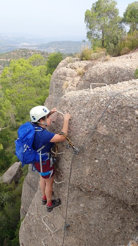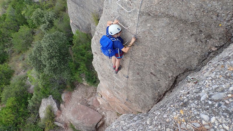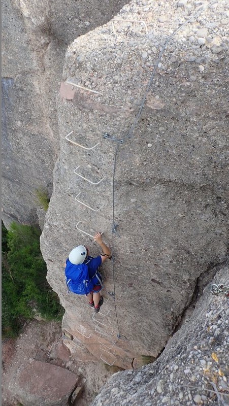 La via és vertical, però amb força esglaons que faciliten i simplifiquen l’ascens. La sortida final, pot semblar que fins i tot tombi una mica, però no és difícil.