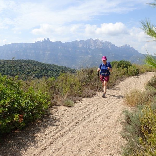 Baixem pel corriol que baixa en direcció sud-est fins a la pista carenera de la Serra del Pivents. El camí de carro ressegueix la carena que baixa del turó cap al nord, amb excel·lents vistes cap a Montserrat i Sant Llorenç.